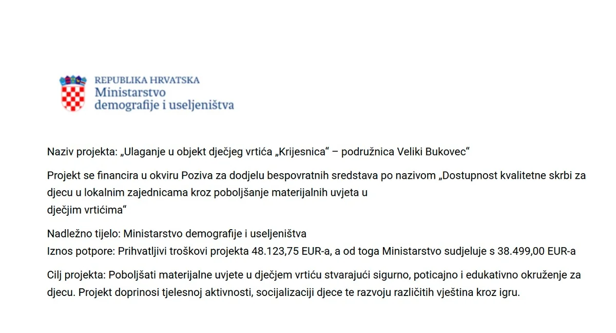 Obavještavaju se studenti s područja Općine Veliki Bukovec da će se podjela jednokratnih novčanih naknada održati dana 14. prosinca 2024. godine u prostorijama Općine Veliki Bukovec u 16,00 sati.